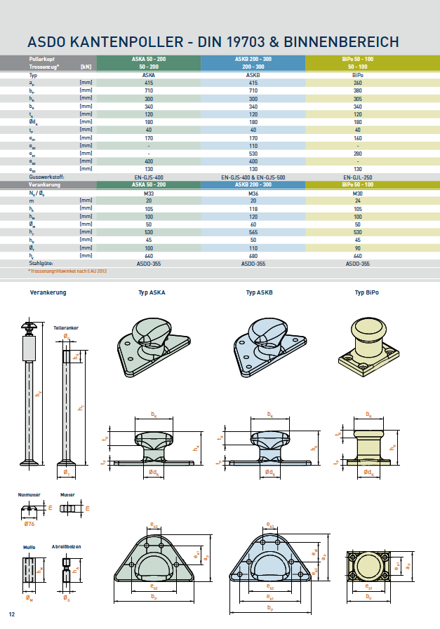 Kantenpoller für den Binnenbereich Wasserstraßen und Schleusen (DIN 19703)