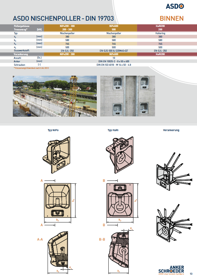 Nischenpoller für Schleusen- und Kaimaueranlagen gemäß DIN 19703