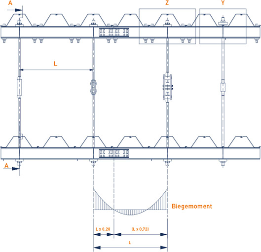 Die Gurtung wird an das jeweilige Spundwanddesign angepasst. In der Regel besteht die Gurtung aus parallel liegenden U- oder I-Profilen, welche über Abstandhalter miteinander verbunden werden. Die Verankerung wird mittig durchgeführt. Bei der Festlegung der korrekten Gurtspreizung sind sowohl die Gewindenenngröße als auch eine eventuelle Neigung der Anker zu berücksichtigen.